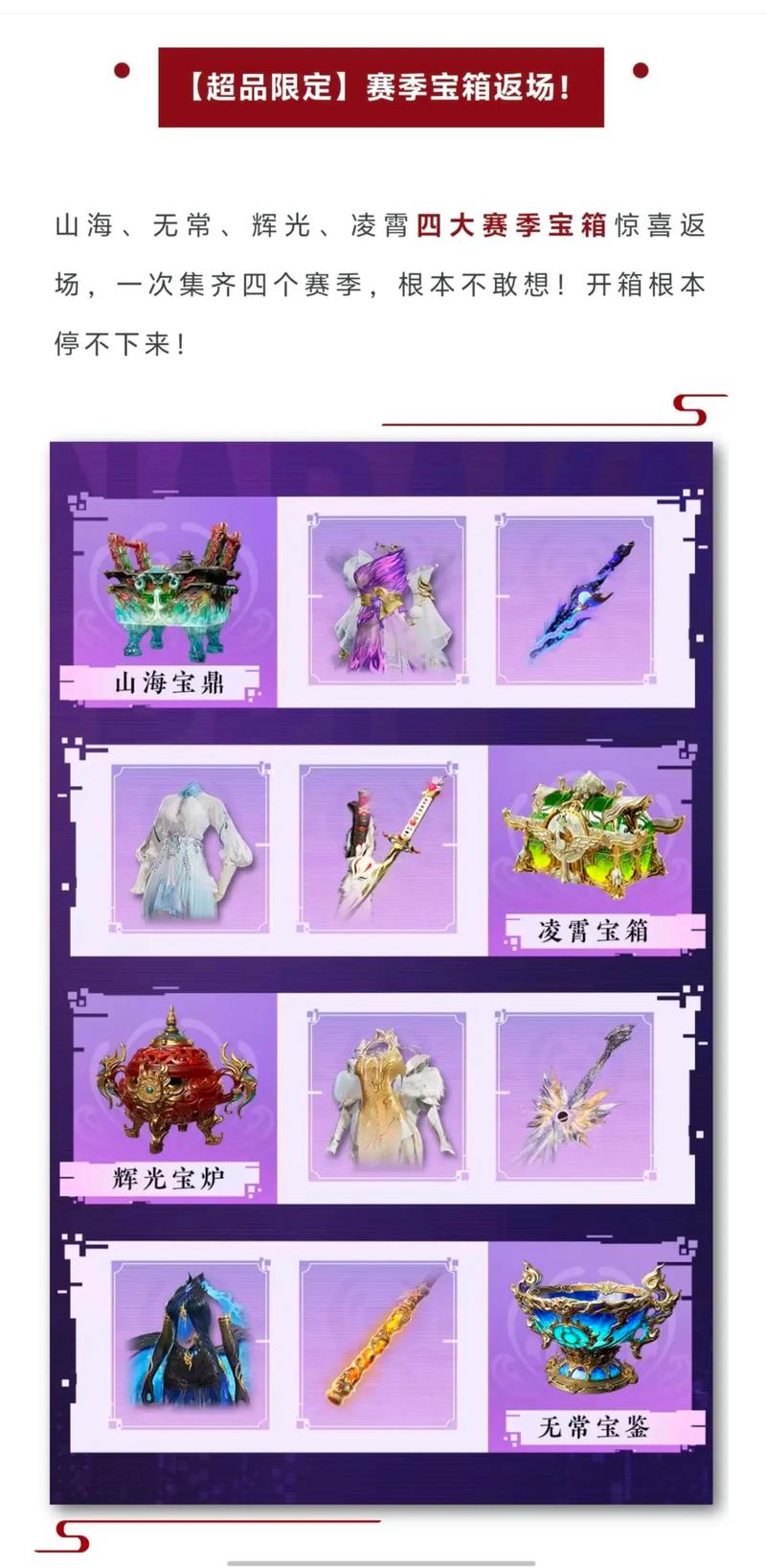 此外,宝箱还设有保底规则,确保玩家在开启一定次数后,必能获得一件紫色(优品)及以上品质的奖励。前100次开启,至少会获得一件红色(神品)品质的奖励。