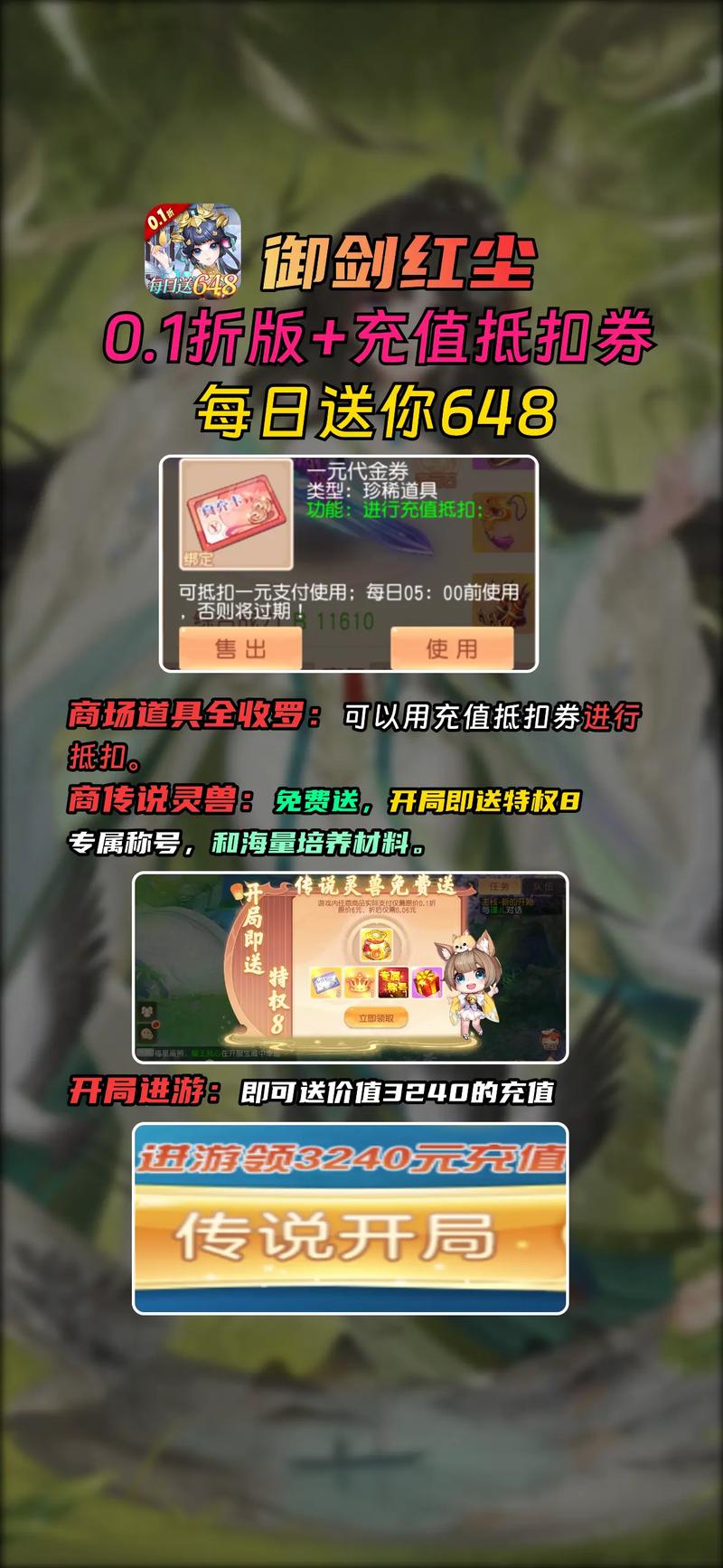 《御剑红尘》定期举办各种活动,参与活动就能获得丰厚的奖励,包括装备、材料、金币等。