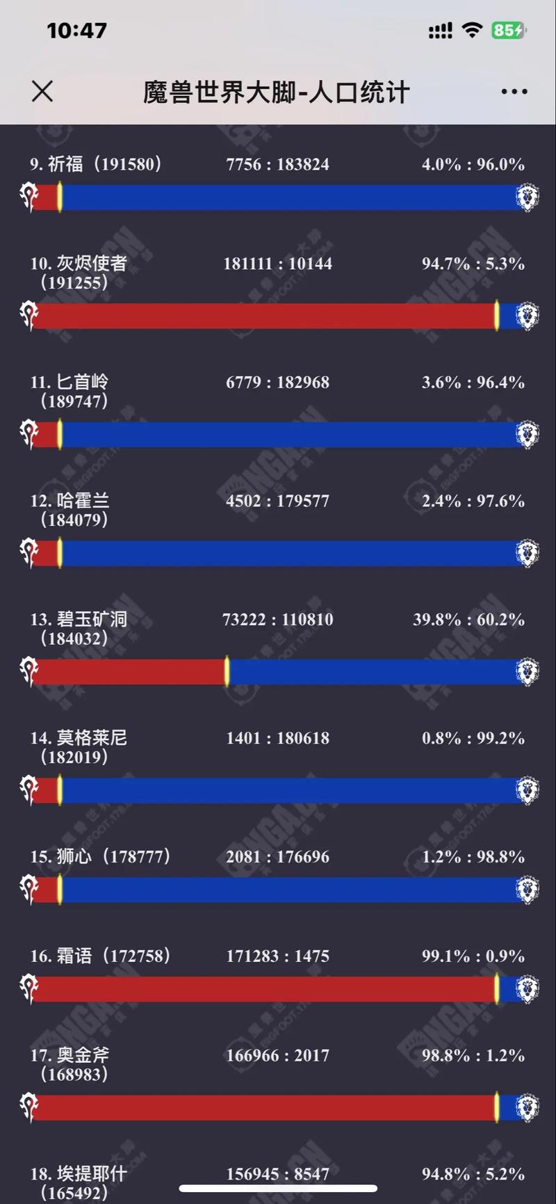 这些数据可以帮助玩家了解《魔兽世界》各服务器和阵营的活跃情况,以及各职业和种族的分布情况。如果你需要更详细的数据,可以参考以下来源: