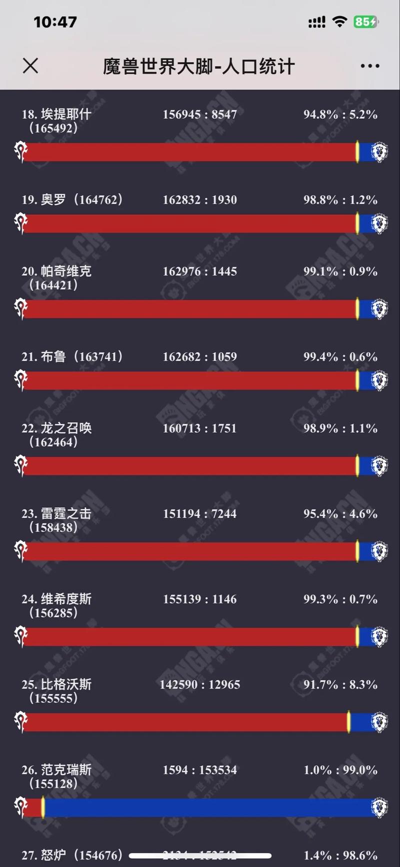 部落:人数略少于联盟,具体数据未详细列出。