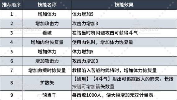 在前期,由于战功获取较慢,建议优先解锁一些实用的技能,如增加攻击力、防御力或特殊攻击的技能。