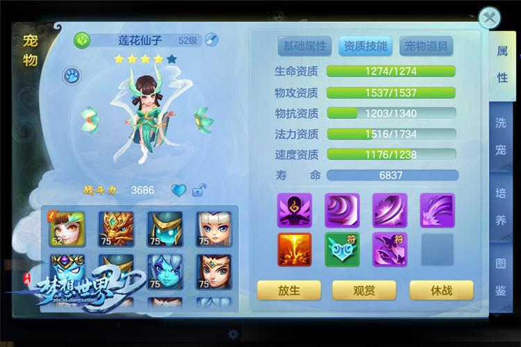 梦想桃仙:推荐技能为“生命吸取”、“灵性”、“法术连击”、“法术必杀”和“神佑”,这种搭配可以提供持续的输出和生存能力。