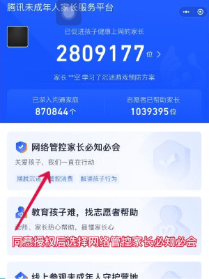 2、即可跳转到腾讯未成年人家长服务平台,点击网络管控家长必知会进入;