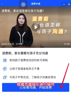 5、进入到退费申请页面,根据提示完成相关的操作提交申请后,等待客服退款即可。