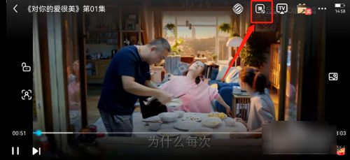 3、如果是横屏播放状态,在右上方点击下图框中位置即可关闭弹幕。