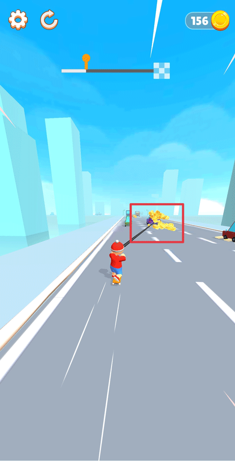 勾车跑酷是一款卡通风格的跑酷游戏,英文名叫Hook’n Roll,这款游戏和我们平时玩的跑酷游戏不同,在该游戏中玩家主要是依靠于钩子来勾住前面的车辆进行跑酷前进,通过不断的勾车,保证自己能够一直前进。若游戏途中暂时没有车辆可以钩住时,你还可以通过钩住路边出现的建筑来前进。不过在前进的同时也要注意道路上的障碍,不要撞到车辆哦,要及时的跳跃和移动闪避,最后成功的抵达终点就算是通过关卡的挑战了。
