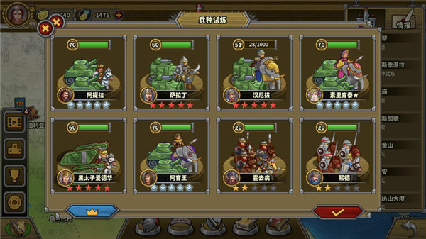 4、多兵种自由招募,还能训练特色士兵,枪兵、喷火兵、坦克等等。