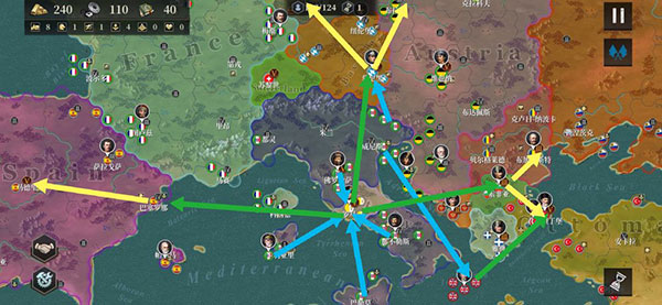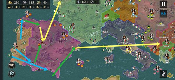 3、一队直接往巴尔干方向打下去,吃掉中部派兵去西班牙。