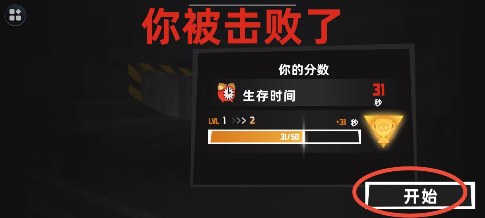3、遭遇其他玩家时可发动进攻,同时也需防范袭击,角色死亡即判定对局终止,系统将展示存活时长与得分数据,并提供重新开局选项。