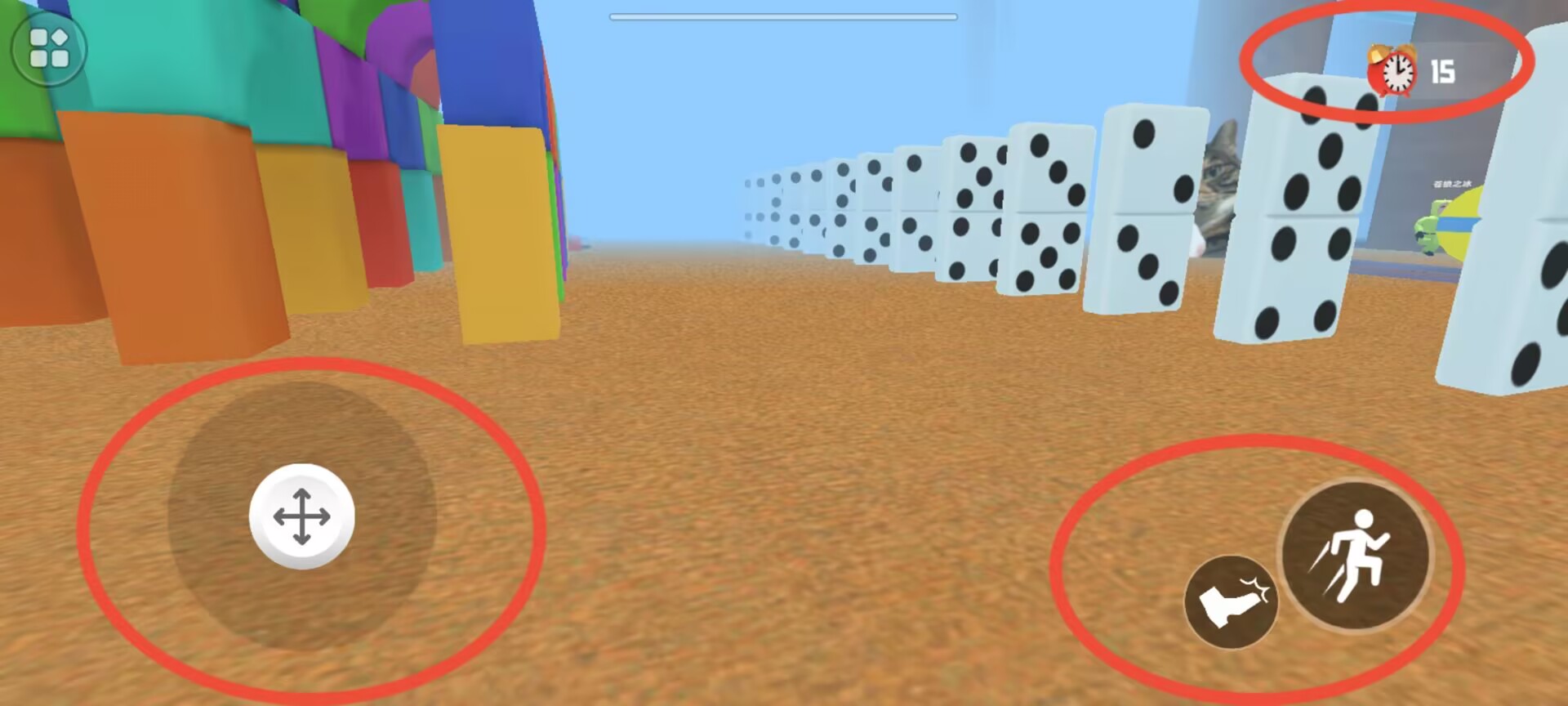 2、核心目标为坚持存活更长时间,左下角设有方向操控区,右上角记录生存时长,右下角则为战斗技能触发区域。