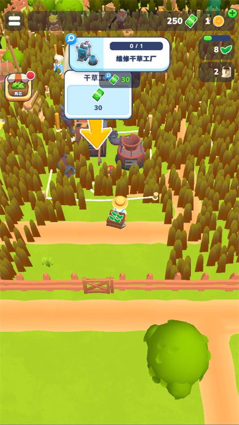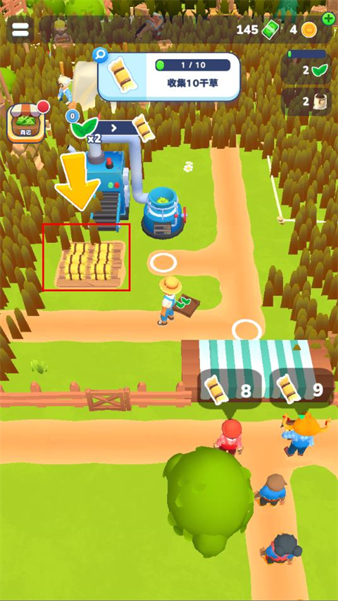 1、进入农场主快开荒中文版游戏后,拖动屏幕解开移动角色,靠近树木即可采集资源。