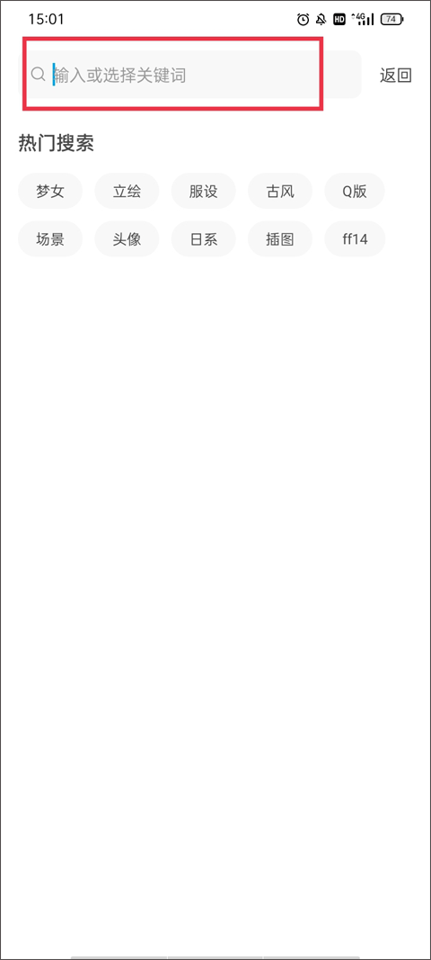 1、选择下方菜单栏【寻宝】界面,切换到画师这个页面,点击搜索功能。切换到搜索界面后,输入画师的关键词进行搜索。