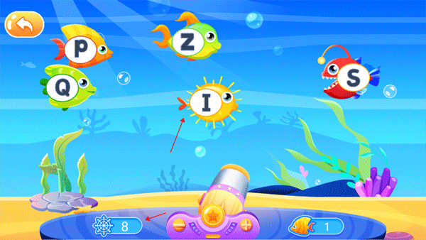 3、通过小炮里面的渔网来抓到正确的小鱼,就可以同时消灭掉身边所有的小鱼。