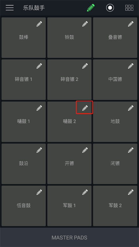 1、双击打开打击垫大师,点击上方的铅笔按钮;