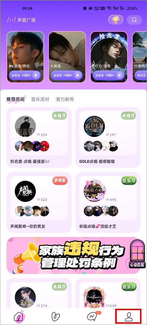 遇见你心动的声音~奶狗音、少年音、青叔音…小仙女喜欢的声音都能在广场里找到!点一点播放键就能试听,轻松捕捉优质男声,赶紧开启愉快的连麦新体验吧~