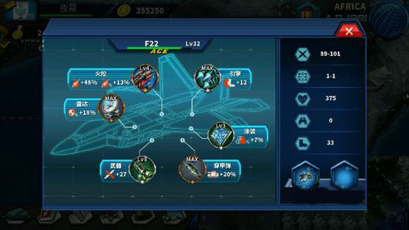 综上可以看出——空军的选择,重攻击属性,轻防御属性;重穿甲,轻概率。