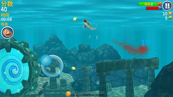 1、游戏的操作方式非常的简单有趣,通过简单的点击即可快速的上手操作控制鲨鱼前行;