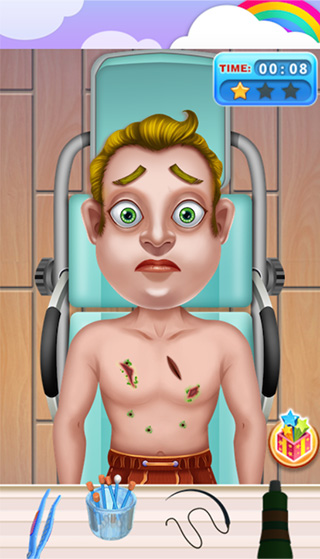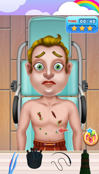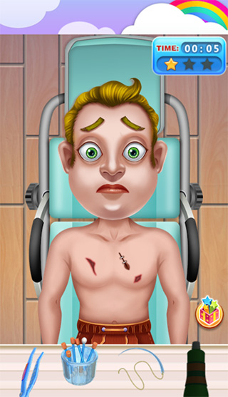 1、游戏采用所有人都可以接受的画面,不是真实的流血场景,轻松学习处理伤口;