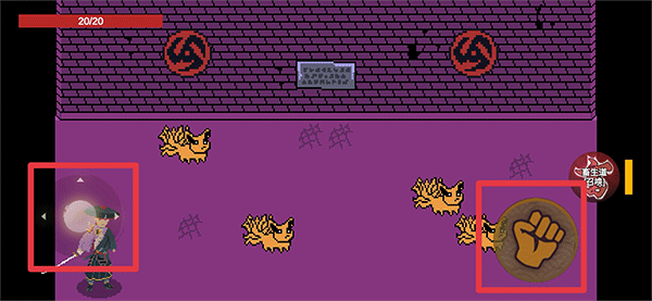1、在漂泊佩恩游戏中玩家通过左下角轮盘操控角色的移动,右边拳头按钮为攻击