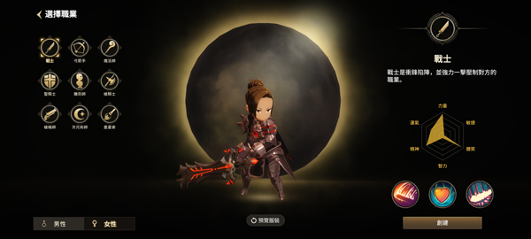 7、等待下载完成,玩家需先创建一个角色,有多个职业可以选择,并支持自定义捏脸;