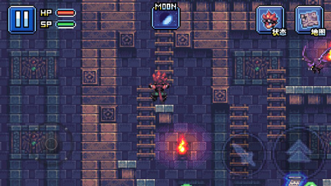 一、在进入游戏后点击新游戏正式进入闯关页面后你会看到地图的左侧有一个控制盘,按住控制盘的中心上下左右拖动控制盘就可以操控你的英雄去你想去的方向。在正式进入闯关页面的右侧会有一个红色和一个蓝色的按键,红色按键是控制攻击的按键,蓝色按键是跳跃按键。