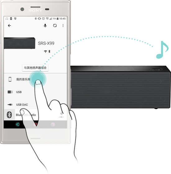 3、您可以在智能手机上播放音乐,包括高解析度音源音轨。