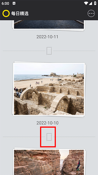 1、打开每日精选官方版,你可以下拉浏览各个摄影专集