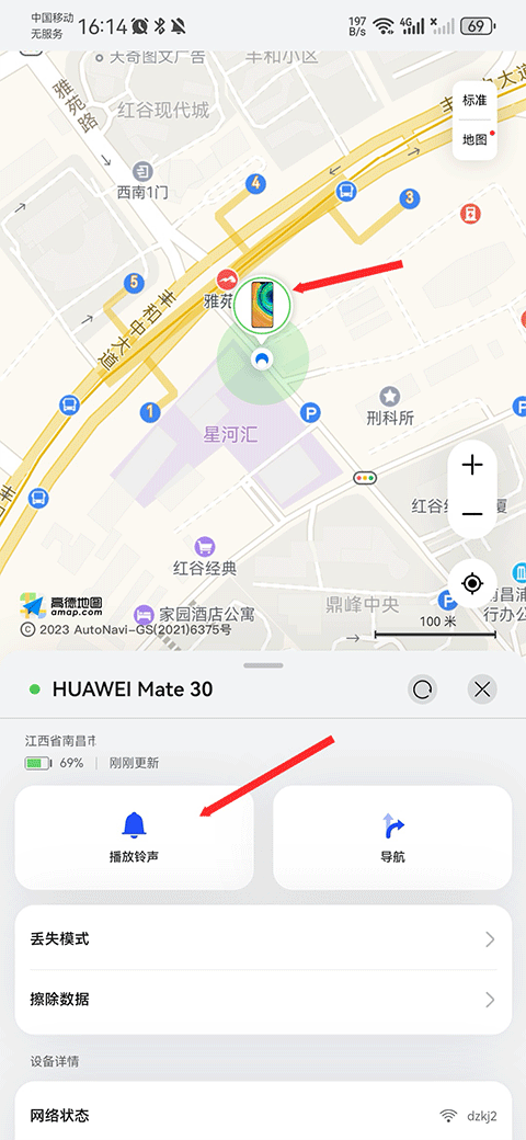 4、到达目的地后,点击手机图标会显示详情信息,然后你可以通过播放铃声来确定手机的位置