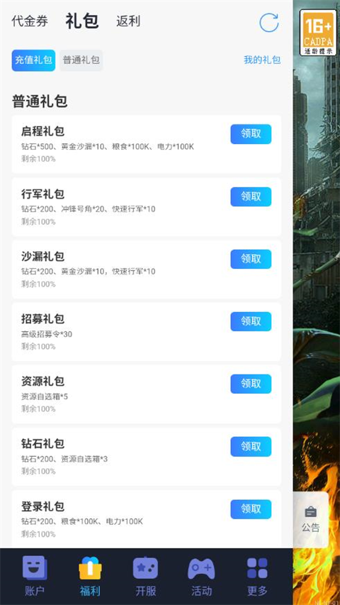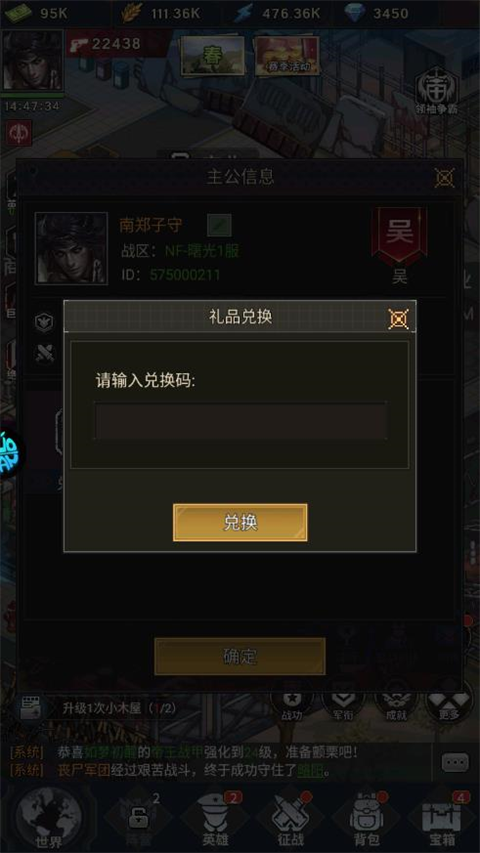 1、进入游戏后,点击首页悬浮球领取游戏礼包兑换码