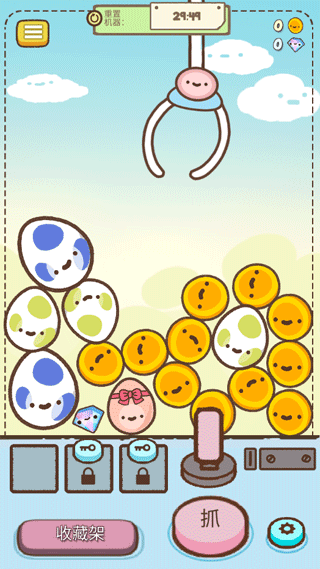 萌宠娃娃机游戏是一款休闲益智的抓娃娃手游,其中采用简约清新的画面进行设计,让你在这里尽情地感受抓娃娃的乐趣。同时游戏的玩法非常的简单,玩家只要操作屏幕右边的杆子和按钮来完成移动和抓取操作,将彩蛋抓上来,成功抓到之后就要开始从彩蛋中孵出娃娃,每个彩蛋孵出来的娃娃都不一样;并且娃娃在孵化的过程中可能还需要相应的金币来加快孵化的过程,这样能早日看到彩蛋里面的娃娃。此外,在萌宠娃娃机游戏中玩家还可以将从彩蛋里面获取的玩具或娃娃集齐到自己的藏品柜里面欣赏,非常的有趣、好玩,感兴趣的朋友不要错过了,快来下载体验一下吧!