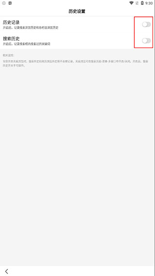 4、找到搜索历史和网页浏览记录,并清理即可;