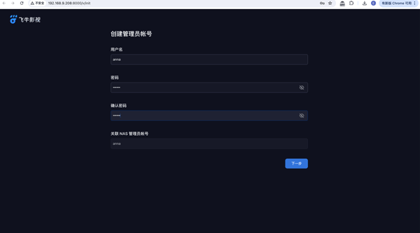点击 开始使用,打开 NAS 授权登录页面,请使用 NAS 管理员授权登录。此步骤将确保只有 NAS 管理员可以成为影视管理员、管理影视应用。
