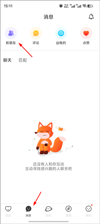 1、打开稀有圈app,进入后点击下方“消息”,在点击左上方“新朋友”;