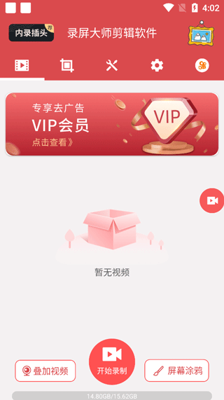 1、将下载好的录屏大师剪辑软件打开,会自动在手机右边显示一个悬浮窗