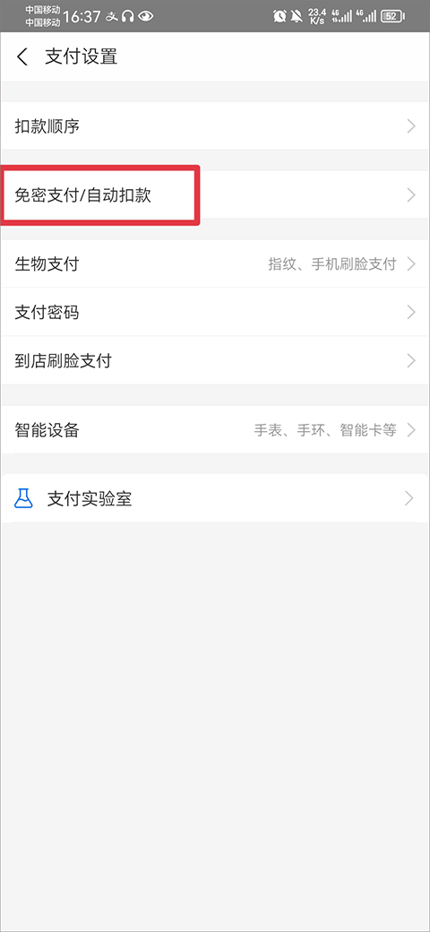 方法二:支付宝一我的一设置一支付设置一免密支付页面取消。