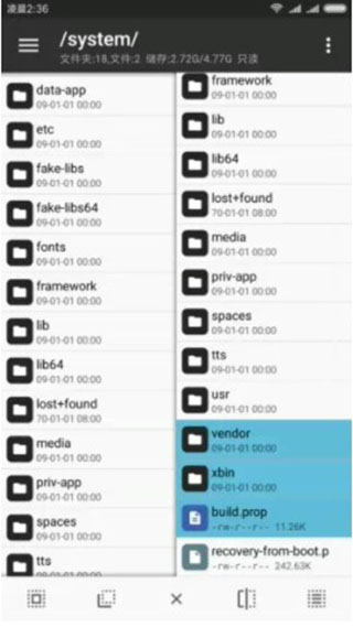 – 文件复制、移动、创建软链接、重命名、删除、创建文件(夹),文件批量操作。获取 Root 权限后可访问系统目录,挂载文件系统为读写,修改文件权限和所有者。