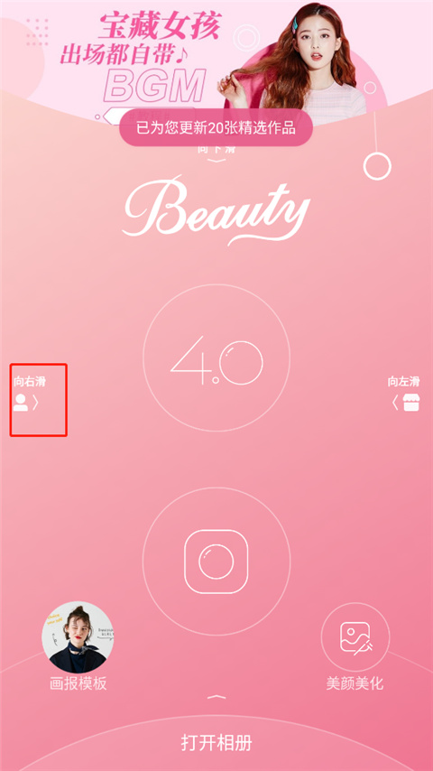 美人相机2026最新版本是一款非常专业的美颜拍照软件,提供了从肌肤、瘦脸、大眼、磨皮、祛眼袋,到瘦脸、上妆等等美颜功能,不用高超的修图技术,不用繁复的操作方法,就能轻松的将用户最美的一面完全展现出来,让你随时一拍都是大片。软件内置易操作的聪明自拍镜头,以及各种四格LOMO、拼图镜头,具备单反相机单独对焦和测光的功能,再加上智能五官定位的精准,让你的美图画质更高清。