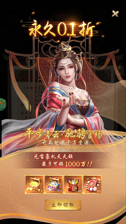 3、创角就送千万元宝礼盒、千万资源礼包,元宝豪礼天天领,最多可领1000万元宝!