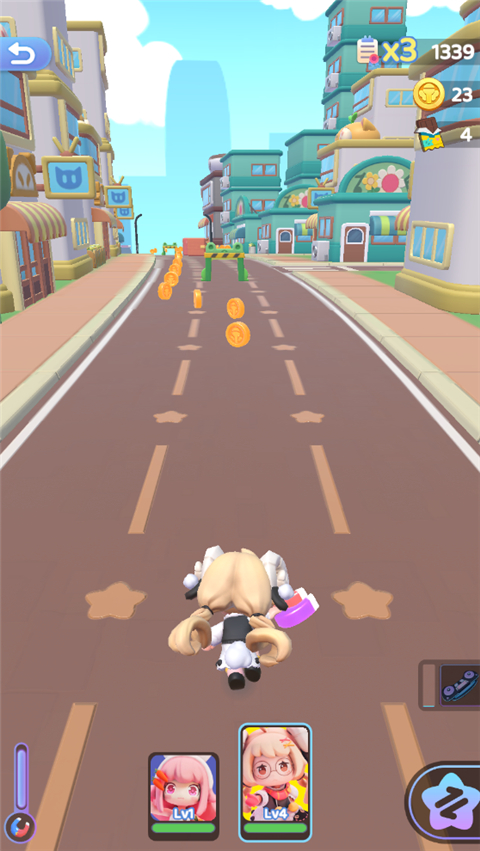 2、在界面中可以添加组队3个迷你少女进行跑酷;