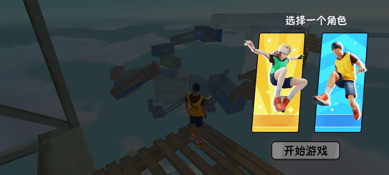 1、进入天空跑酷游戏,选择角色后开始游戏