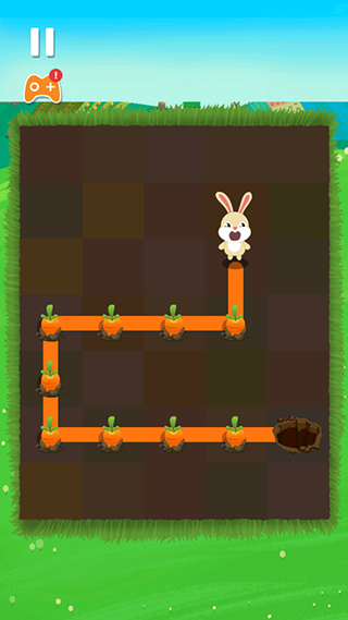 玩法介绍:进入游戏后,需要让兔子用一条线路吃完菜园的蔬菜,这样才能满星通过游戏哦!
