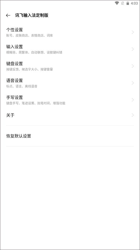 4、接下来就是选择切换到“讯飞输入法定制版”,进入到app系统界面。