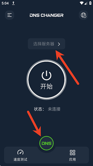 2、使用时先点击底部的dns图标按钮,然后选择dns服务器