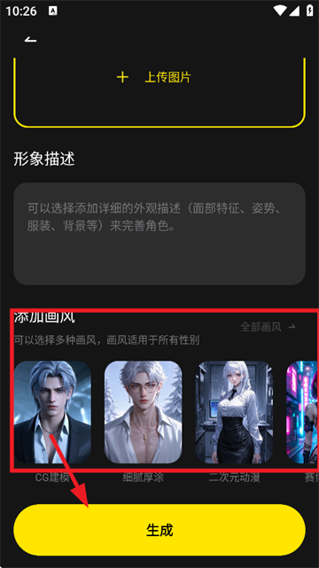 4、选择形象生成即可。