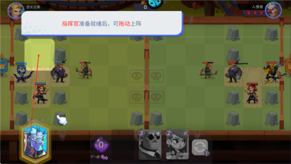 1、进入星际护卫队游戏后,拖动卡牌上阵英雄