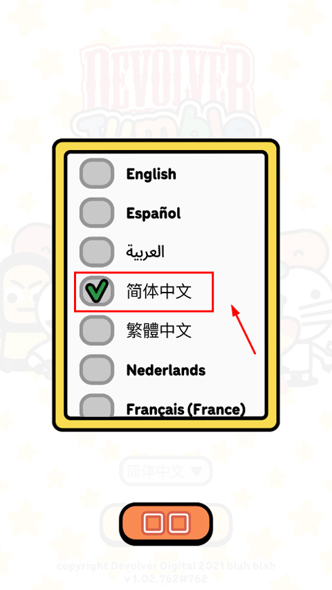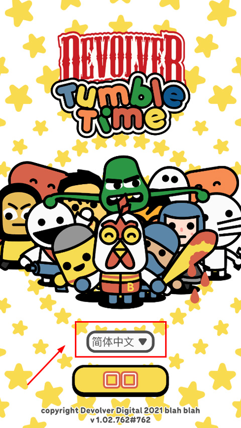 1、首先打开devolver滚滚乐游戏,点击语言按钮;