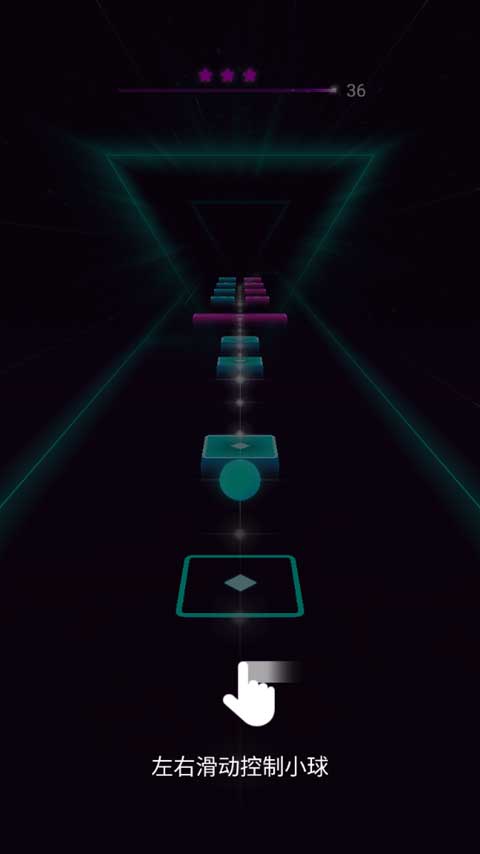 2、左右轻轻滑动指尖以跟随音乐节奏,使音乐球落在与球的颜色相对应的色块上;