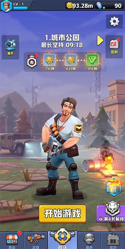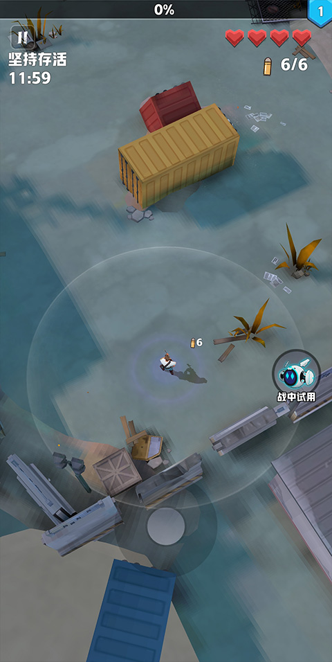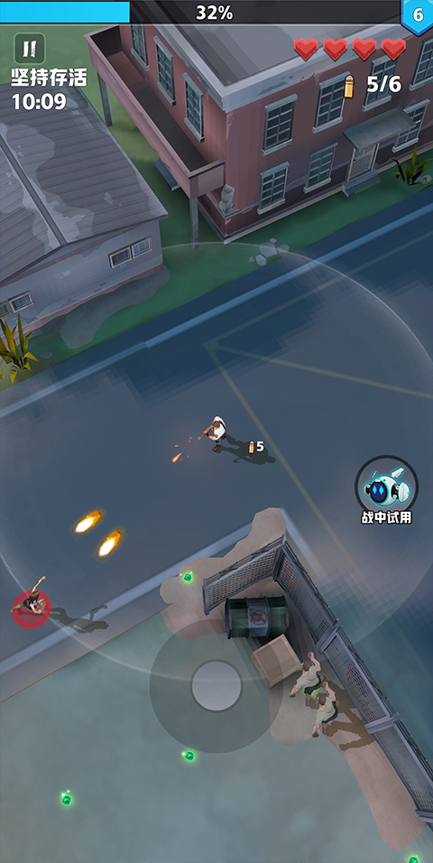 3、升级好武器之后就可以进入战斗了,进入游戏之后滑动屏幕控制游戏角色,控制角色来躲避僵尸的攻击;