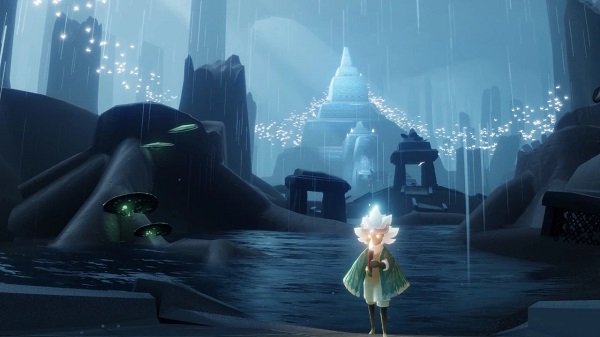 密集的丛林,被迷雾笼罩着。在淅淅沥沥的雨中,似乎难以辨清前方的方向,相信大家在视觉上就已经能够感受到,这里的体验将与云野中的晴空截然不同。步入雨林,“光之后裔”们将迎来,《Sky天·遇》世界中的第一个小挑战,并将于此遇见王国的守护神“先祖”。