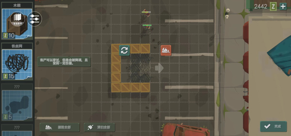 3、你需要用诸如铁丝、木箱、地刺等路障保护你的生存小队,延缓丧尸靠近你们的时间;
